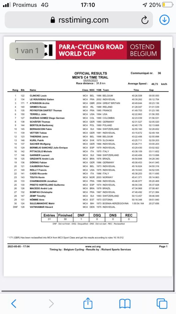 Hij kan zijn wegritseizoen afsluiten met een eerste plaats op de UCI wereldranglijst “Men Elite C4 – Road Para Ranking.